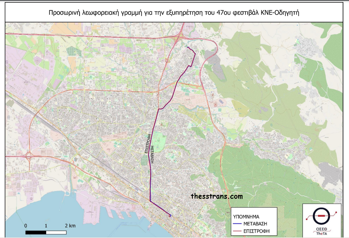 Ο ΟΣΕΘ σε συνεργασία με τον ΟΑΣΘ δημιούργησε μια προσωρινή γραμμή για την εξυπηρέτηση του φεστιβάλ της ΚΝΕ στο στρατόπεδο Καρατάσου. Η λεωφορειακή γραμμή αυτή έχει αφετηρία την πλατεία Αριστοτέλους και τερματίζει στον Τερματικό σταθμό της Ευκαρπίας, διερχόμενη από την λεωφόρο Λαγκαδά. Η γραμμή θα λειτουργήσει τις μέρες του φεστιβάλ, από της 16 εώς της 18 Σεπτεμβρίου. Στην γραμμή θα δρομολογηθούν από 3 εώς 5 οχήματα